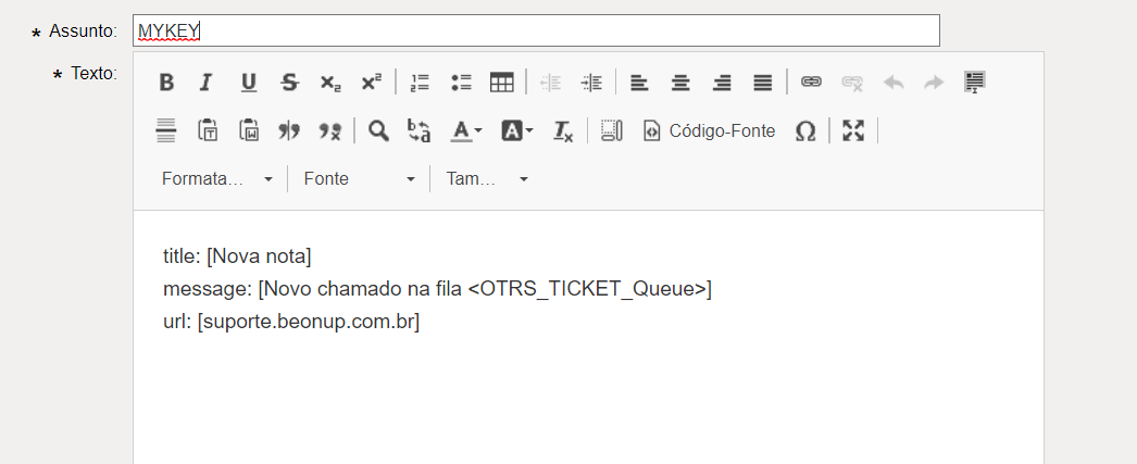 message: [Novo chamado na fila <OTRS_TICKET_Queue>]<br />