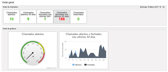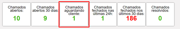 Observe que adicionamos o indicador que mostra a quantidade de chamados pendente com o cliente.