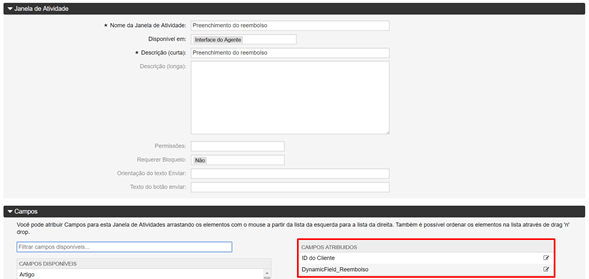 O OTRS tem um conjunto de campos dinâmicos para ajudar a categorização e implementação de funcionalidades que estão por padrão no sistema.