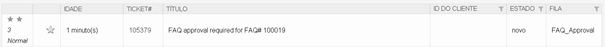 Esse módulo fica disponível através de um menu na interface do usuário no OTRS, lembrando que esse módulo pode ser restringido via permissão, de modo que podemos liberar essa visão apenas a alguns usuários clientes.