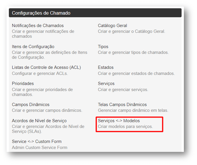 Você pode criar formulários personalizado por serviço, isso proporciona mais flexibilidade na hora de criar seus chamados.