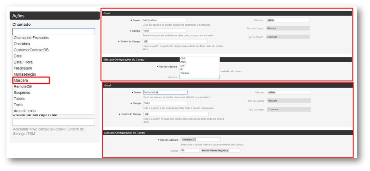 Esses são os tipos de campos que existem por padrão no OTRS, nós criamos alguns outros para expandir as funcionalidades.