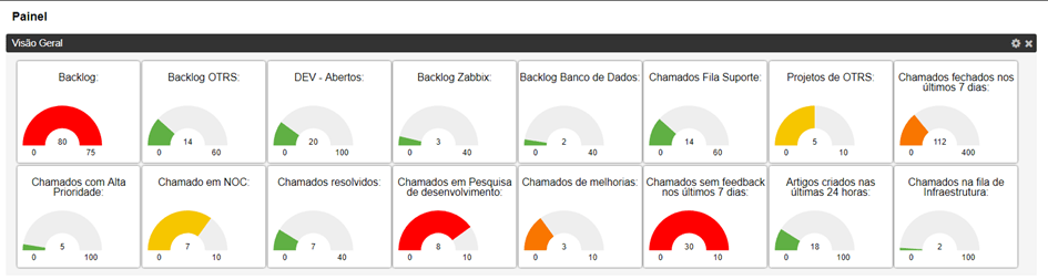 O OTRS não possui na interface do cliente nenhum tipo de indicador com gráficos para facilitar a visão de consumo do suporte ou indicação de pendencias.