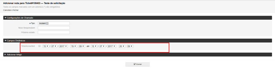 Desenvolvemos um plugin para registrar tempo contabilizado no chamado com hora inicial e hora final, esse módulo ajuda saber se o registro de tempo foi feito dentro do horário contrato e se foi hora extra do funcionário.